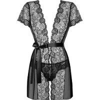 Obsessive Alluria - kanten kimono en string (zwart)v.a.35,45
