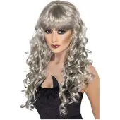 Smiffys Mooie zilverkleurige pruik Siren met lang krullend haar