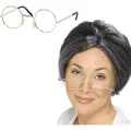 Smiffys - Oma Sarah carnaval verkleed set - pruik grijs met knotje - en oma brilletje