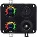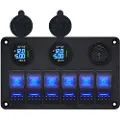 Proride Schakelpaneel 12V voor Auto/Boot - USB Lader 2 Poorten met Schakelaar/Ampèremeter - QC3.0 - 6 Schakelaars