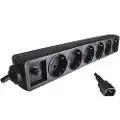DINIC Stekkerdoos met IEC C14 stekker en 6 CEE 7/3 contacten - zonder schakelaar / zwart - 1,5 meter