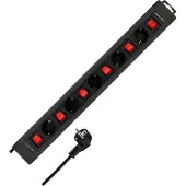 DINIC Stekkerdoos met IEC C14 stekker en 6 CEE 7/3 contacten - zonder schakelaar / zwart - 1,5 meter