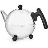 Bredemeijer - Duet Bella Ronde – Dubbelwandige Theepot – 0,75 liter - RVS - Zwart beslag